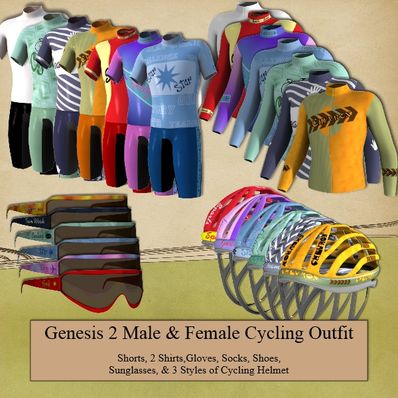 G2M & G2F Cycling Outfit Part 2 Cycling Outfit for Genesis 2 Male & Female for use in Daz Studio 4.6.