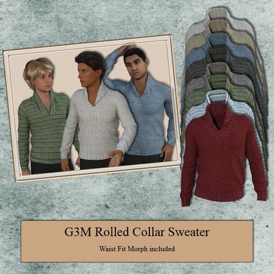 G3M Rolled Collar Sweater Rolled Collar Sweater Genesis 3 Male for use in Daz Studio 4.8